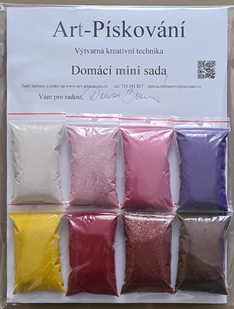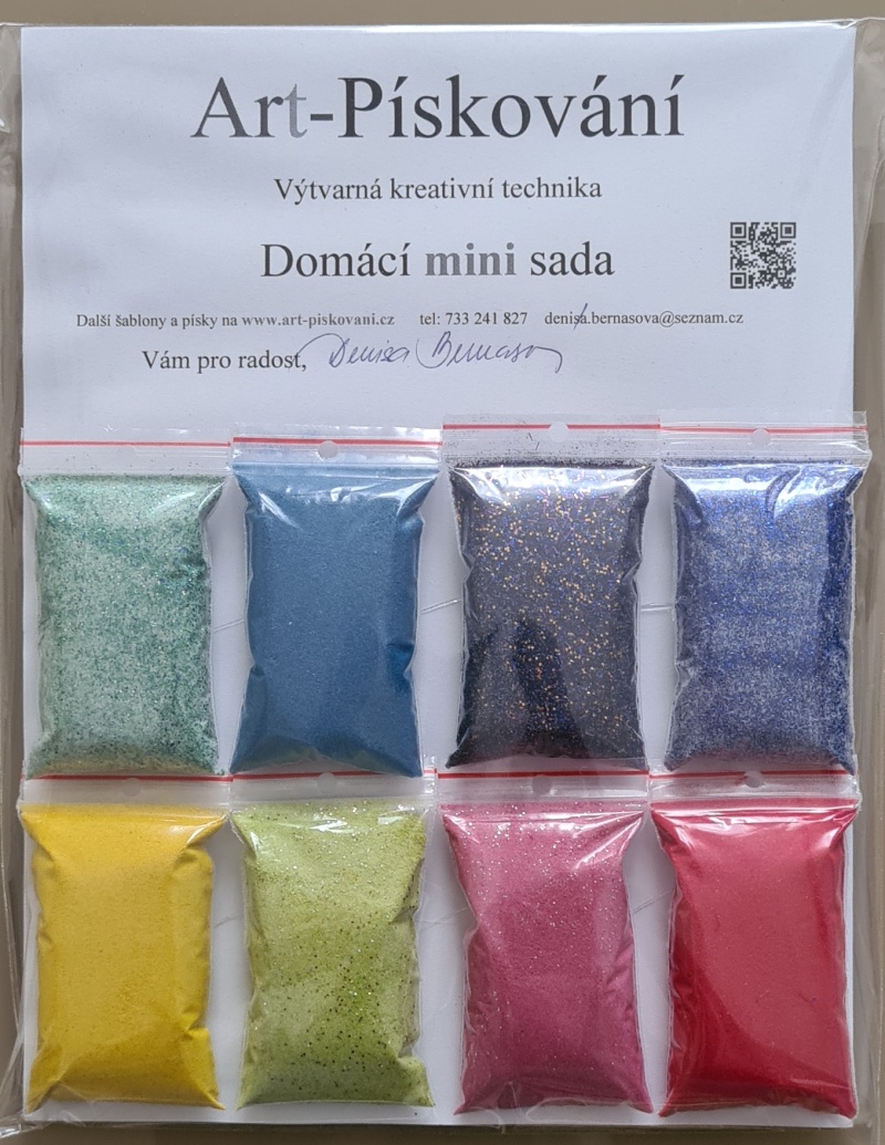 - Barvy písků v jednotlivých sadách jsou vybrány s ohledem na motivy šablon.